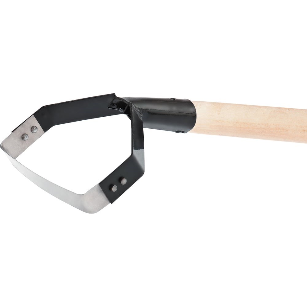 Предназначен для прополки сорняков. Режущее лезвие изготовлено из рессорно-пружинной стали, а державка и тулейка - из конструкционной углеродистой стали обыкновенного качества, что гарантирует надежность использования. Острая режущая кромка эффективно подрезает корни. Порошковое покрытие надежно защищает инструмент от коррозии. Поставляется в сборе с деревянным черенком первого сорта.