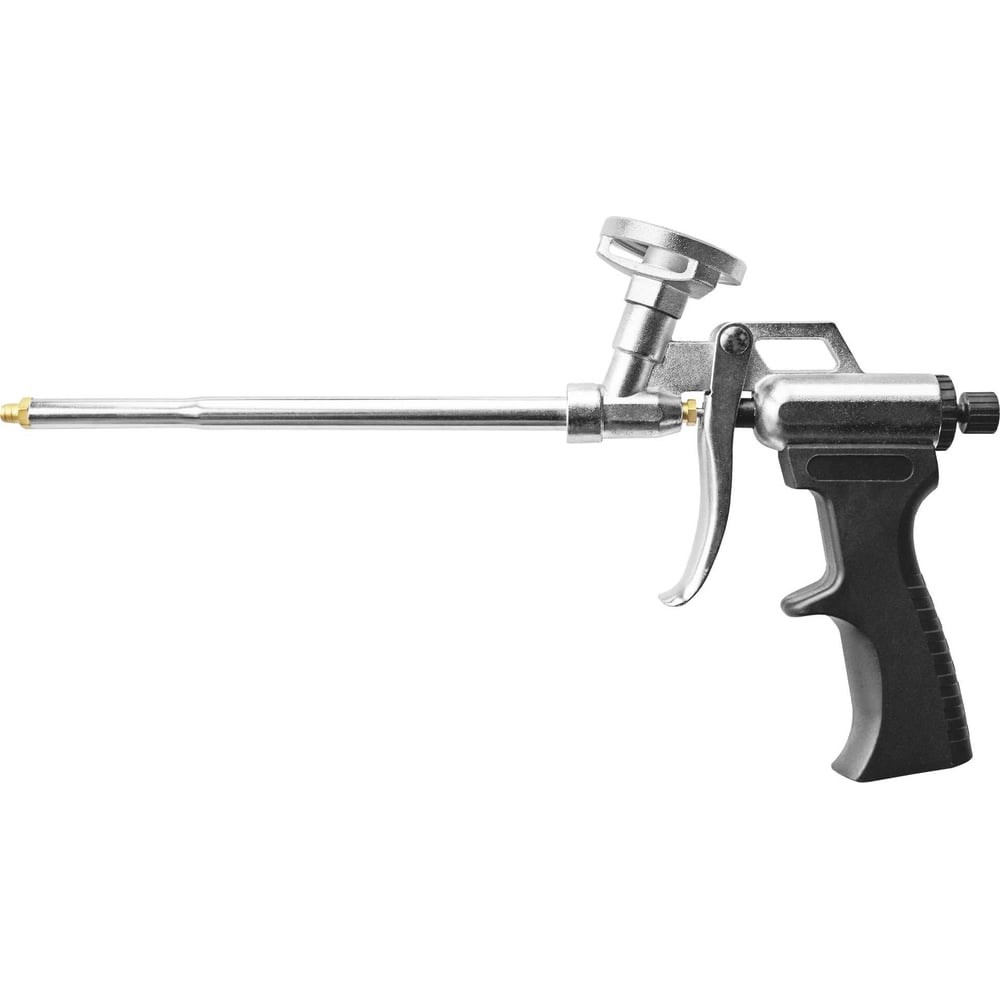 Корпус – металлический. Адаптер – цельнометаллический с клапаном подачи пены, съемный. Дуло – стальное, с конфузором, удлиненное. Регулятор напора пены – расположен с тыльной стороны корпуса пистолета, легкая и точная регулировка. Рукоятка – пластик.
