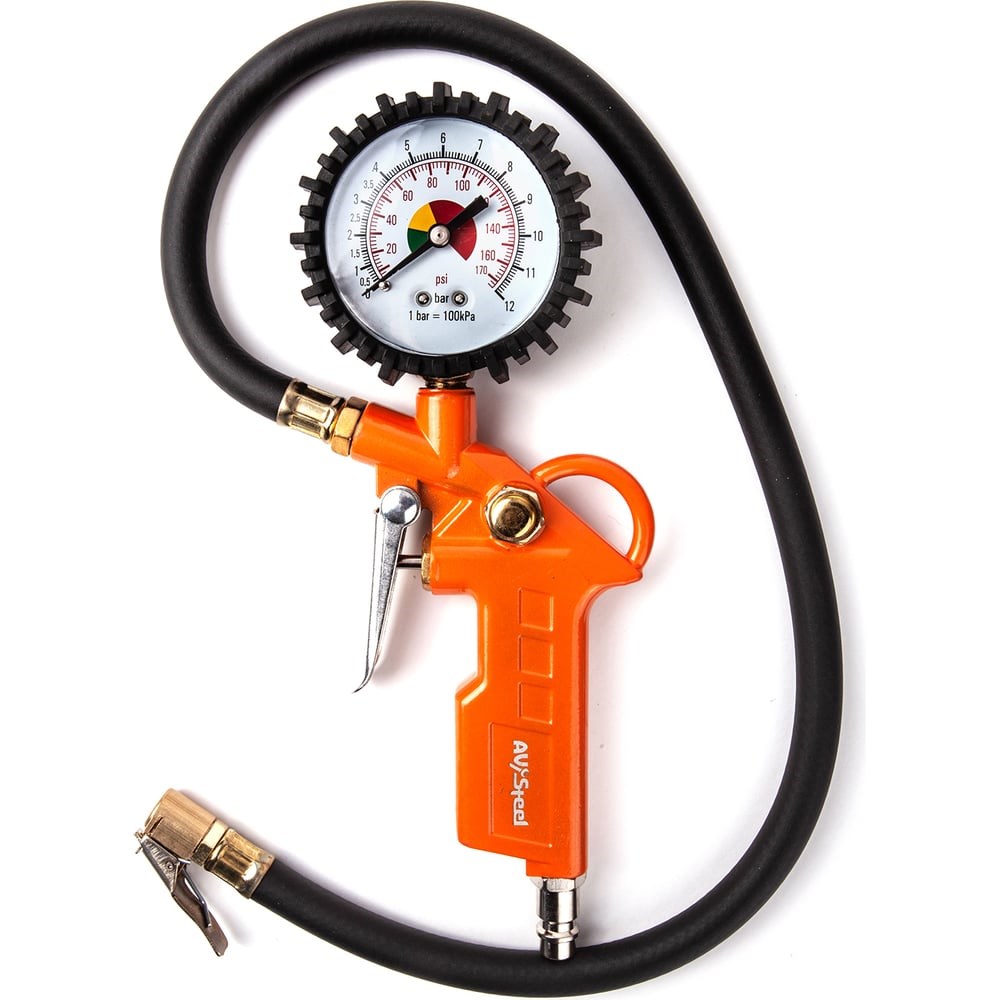 Пистолет для накачки шин AV Steel AV-700502 используется в автосервисах, гаражах и шиномонтажных мастерских. Имеет манометр с двойной шкалой, благодаря этому можно визуально контролировать уровень остаточного давления в шинах. Благодаря длинному гибкому шлангу, можно работать в местах с ограниченным доступом.