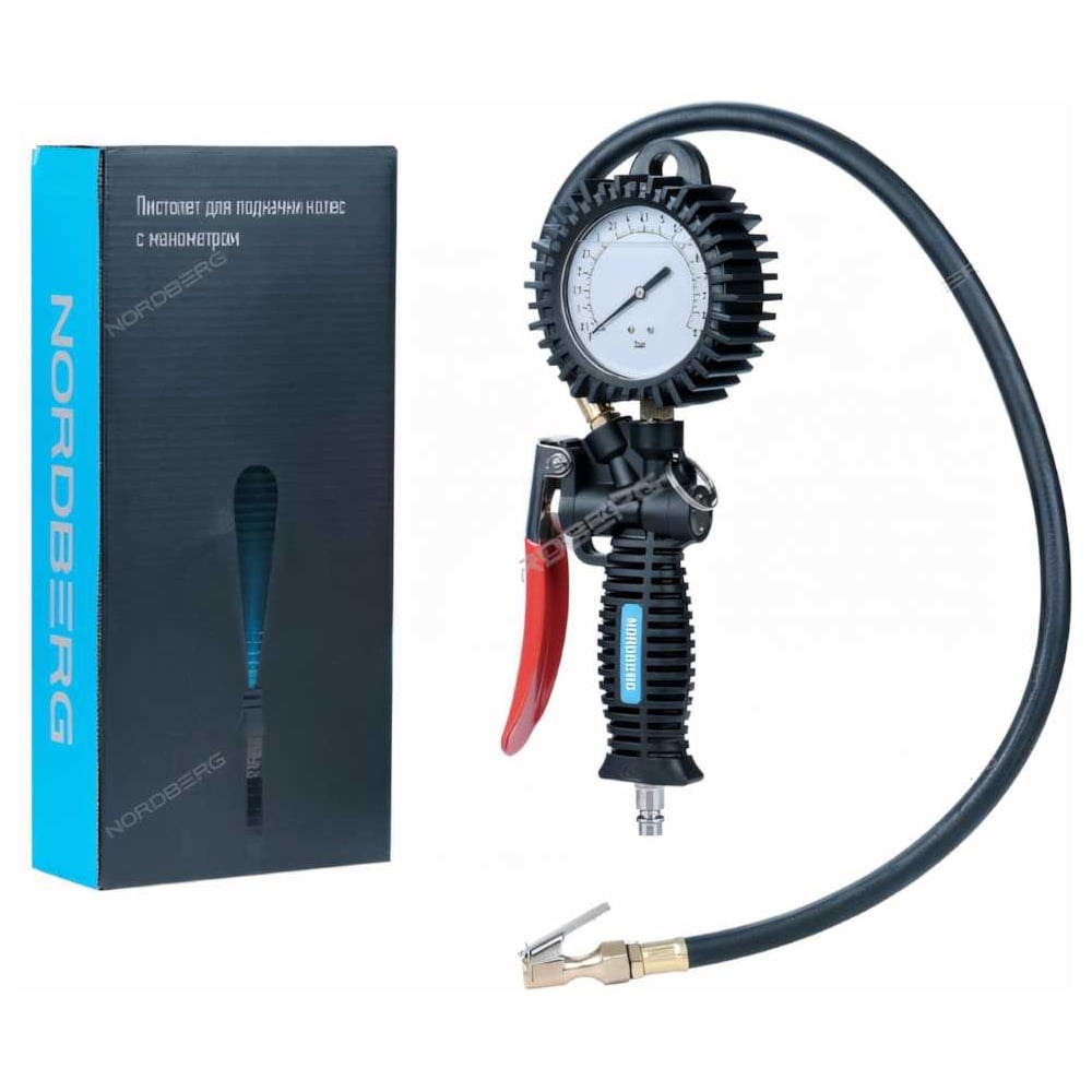 Пистолет для подкачки колес с жидкостным манометром NORDBERG Ti62 имеет эргономичный корпус с широкой управляемой рукояткой. Большой манометр со шкалой до 8,5 Бар обеспечивает высокую точность измерений. Управление накачка/спуск производится одной рукояткой. Оснащен быстросъемным переходником для подключения сжатого воздуха.