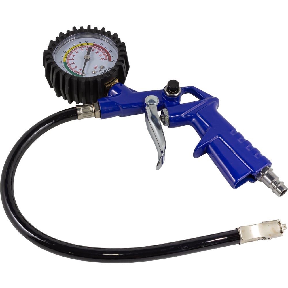 Пистолет для подкачки шин c аналоговым манометром от бренда Forsage (0-8.5 Бар) - это надежное устройство, которое используется для накачивания шин автомобилей, мотоциклов, велосипедов и других транспортных средств. Он оснащен аналоговым манометром, который позволяет точно контролировать давление в шинах, и имеет шланг длиной 40 см, что обеспечивает удобство при работе в труднодоступных местах. Способ применения: Подсоедините шланг к пистолету для подкачки, затем подключите его к компрессору или насосу для накачивания воздуха. Установите давление, соответствующее требованиям производителя для вашего транспортного средства. Вставьте в отверстие для ниппеля шины наконечник пистолета для подкачки. Нажмите на курок пистолета, чтобы начать накачивание воздуха в шину. После достижения необходимого давления, отпустите курок и отсоедините наконечник пистолета от ниппеля. Повторите процесс для каждой шины. Использование пистолета для подкачки шин позволяет быстро и удобно накачивать шины с высокой точностью и безопасностью. Его надежность, точность и удобство использования делают его идеальным выбором для владельцев автомобилей, мотоциклов и велосипедов. Рабочее давление: 0-8.5 Bar.
