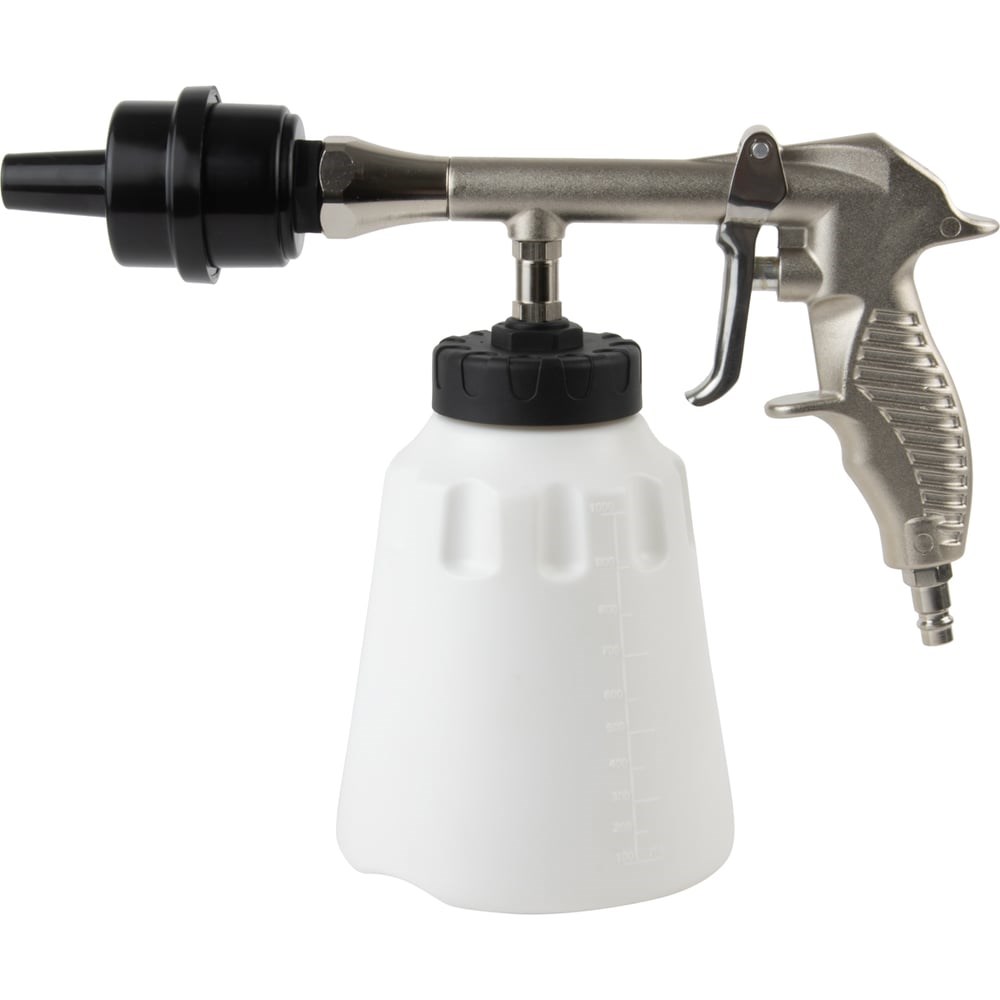 Пистолет-генератор активной пены WiederKraft WDK-BC20G разработан для профессионального ухода за кузовом автомобиля. Этот надежный аксессуар быстро и равномерно наносит плотную и густую пену на большие поверхности, эффективно удаляя даже стойкие загрязнения. Эргономичная алюминиевая рукоять с ребристым покрытием удобно ложится в руку и предотвращает выскальзывание, что особенно важно при работе с моющими средствами. Дополнительные характеристики: Объем емкости для пены: 1 л Рабочее давление: 3–16 бар Температурный диапазон: от -5°С до +80°С Тип соединения: рапид (евро) Диаметр воздушного штуцера: 1/4"