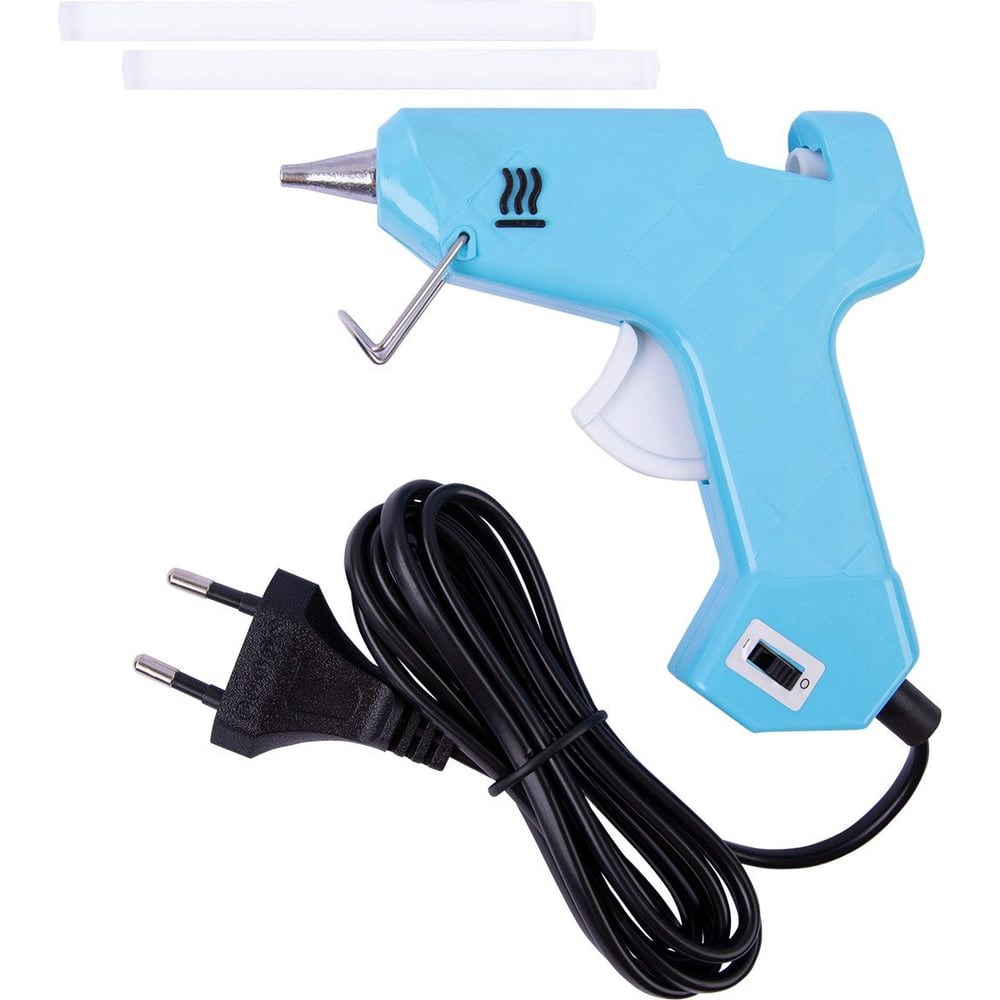 Клеевой пистолет - удобный инструмент для быстрого склеивания разных материалов: дерева, ткани, бумаги, стекла, керамики, кожи, металла и т.д. Клеевые стержни диаметром 7.2 мм арт. GFGC-7, GFG-7/83, GFM-7, GFGL-7 подходят для работы с этим пистолетом. Можно использовать цветной и прозрачный клей. В комплекте с пистолетом идут 2 прозрачных стрежней длиной 10 см и инструкция по применению. Специальный клапан, встроенный в корпус, препятствует нежелательному вытеканию клея и экономит материал. На корпусе датчик нагрева температуры, загорается, когда пистолет нагревается. Имеется кнопка включения и выключения, удобно отключать пистолет, если прерываешь работу. Продолжительность работы пистолета не должна быть дольше 40 минут, после чего должен быть сделан перерыв 5-10 мин. Пистолет с металлической подставкой надежно устанавливается и фиксируется на поверхность стола.