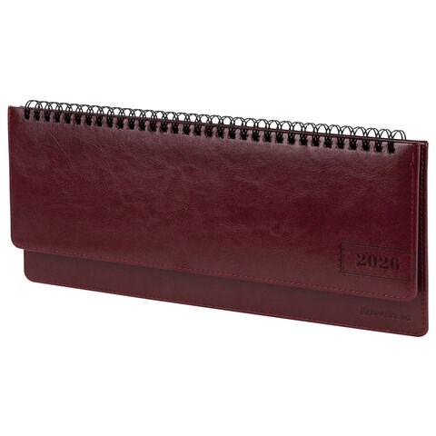 Планинг датированный 2026 305х140 мм BRAUBERG "Imperial", под кожу, бордовый, 117227
