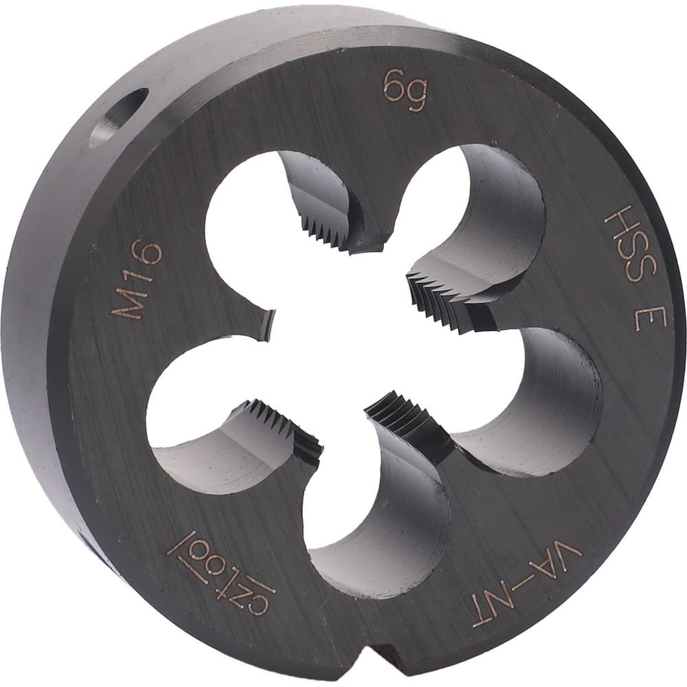Плашка М 16 шаг 2.0мм HSSE-VA-NT 45x18мм Bucovice Tools 301160 предназначена для создания внешней метрической резьбы, с углом профиля 60 градусов на деталях и заготовках из различных материалов. Изготовлена из высококачественной быстрорежущей стали легированной кобальтом 5%, которая гарантирует прочность и износостойкость. Подходит для обработки заготовок, выполненных из легированной или нержавеющей стали, чугуна, алюминия, меди, бронзы, цинка, с пределом прочности до 1100MPa. Стандарт: DIN EN 22568 Шаг, P: 2.0мм Режущие кромки, s: 5шт Толщина плашки, h: 18мм Диаметр под резьбу:15.82мм Угол резьбы: 60 град. Допуск: 6g Форма захода: 2.0P Резьба: ISO DIN 13