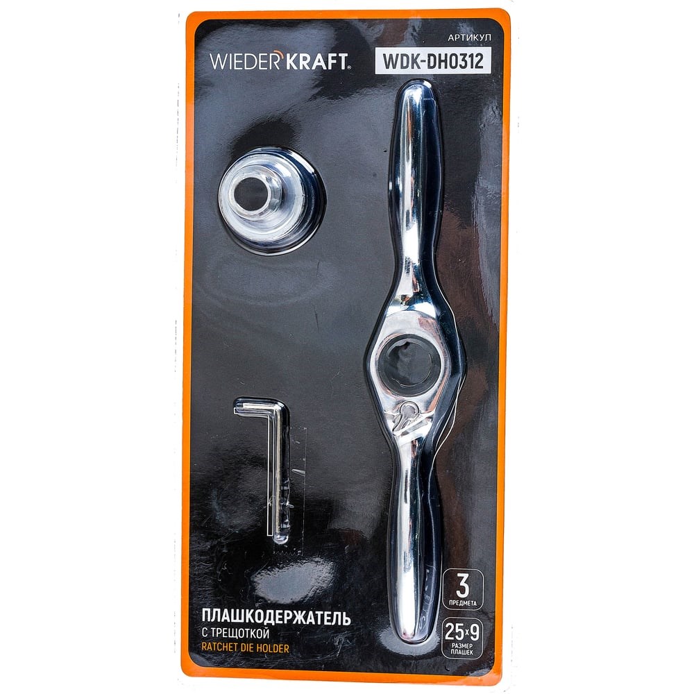 WIEDERKRAFT WDK-DH0312 Профессиональный плашкодержатель с трещоткой для плашек 25х9 мм. Трещотка обеспечивает удобство при работе в труднодоступных местах, оборудована стопором и реверсом.