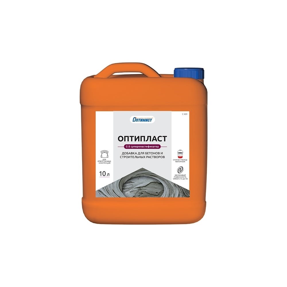 Пластифицирующая добавка Оптимист Оптипласт С409 10 л OPO010 применяется в производстве монолитных и сборных железобетонных изделий в гражданском, промышленном, дорожном назначении. Состав используется при изготовлении ответственных конструкций с повышенной степенью армирования и сложной конфигурацией. Добавка способна замедлять сроки схватывания бетона при дальнейшем наборе прочности. Состав без запаха, не токсичен, экологически безопасен. Дополнительные технические характеристики: Расход 150-200 мл на 1 мешок (25 кг) строительной цементно-песчаной смеси. Расход 1,5-2,5 л на 100 кг цемента.