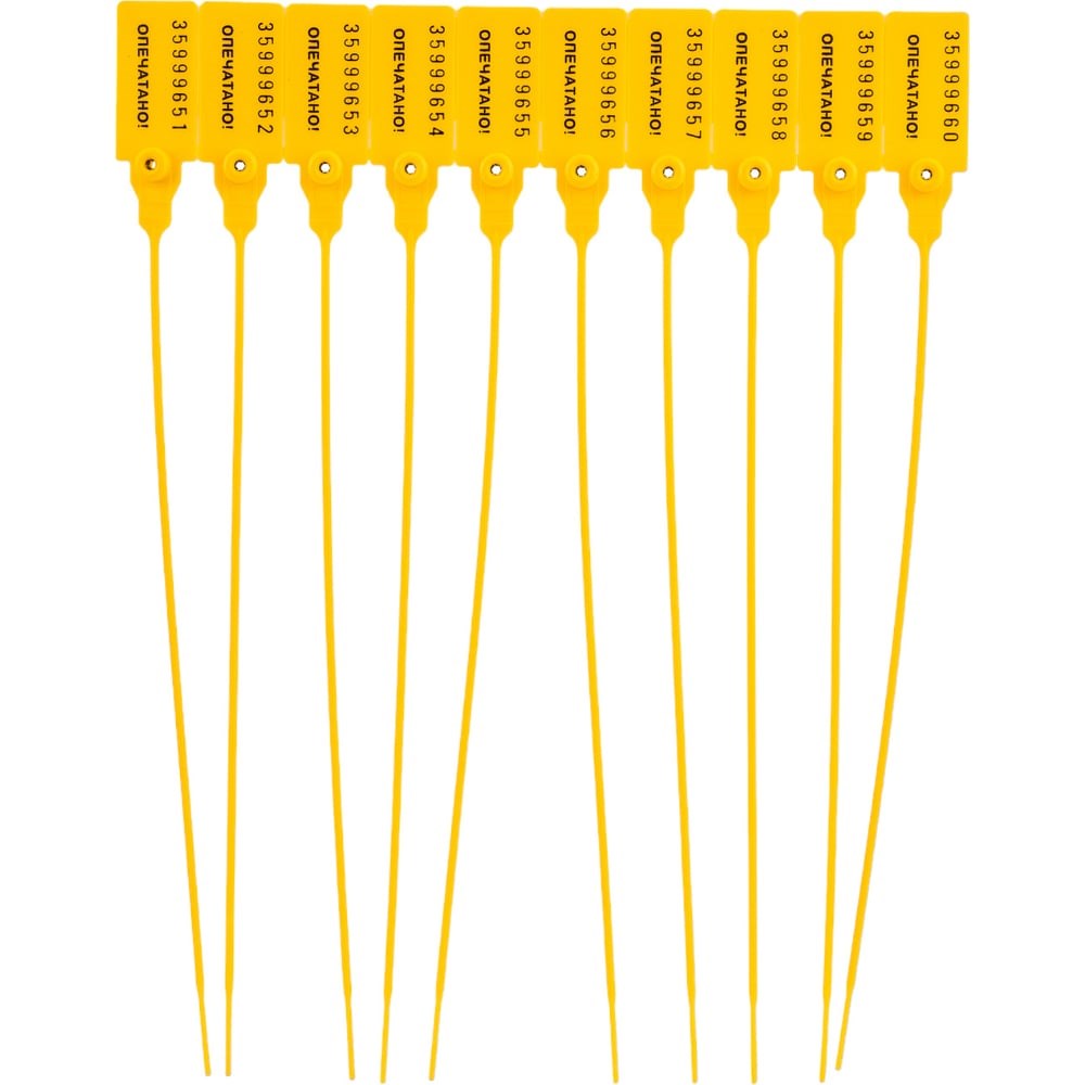 Пластиковая номерная пломба Пломба.Ру D 2,3 мм, L 220 мм, Цвет желтый 50 шт. 639315 закрывается вручную без применения специальных инструментов. Снятие пломбы - вручную. Тип - затягивающаяся. Запирающий механизм - пластмассовая четырех лепестковая цанга. Нанесение индивидуального номера (6 или 7 знаков) термопечатью или лазером. Нанесение серии (1 или 2 знака) термопечатью или лазером. Область применения: складские помещения, автомашины, контейнеры бортового питания, морские и железнодорожные контейнеры, сейфы, электрошкафы, различные типы тары, инкассаторские сумки, огнетушители и т.д.