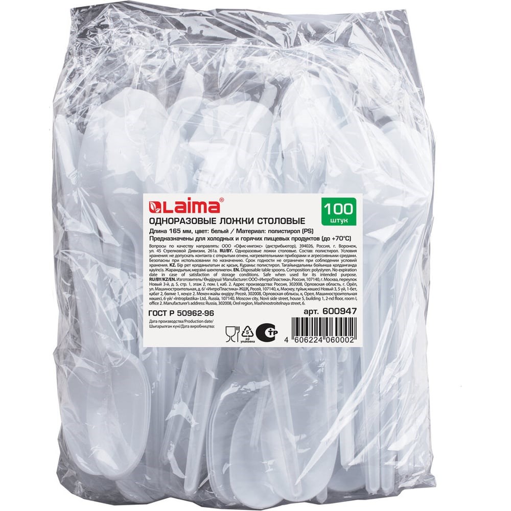 Пластиковые столовые одноразовые ложки LAIMA Бюджет