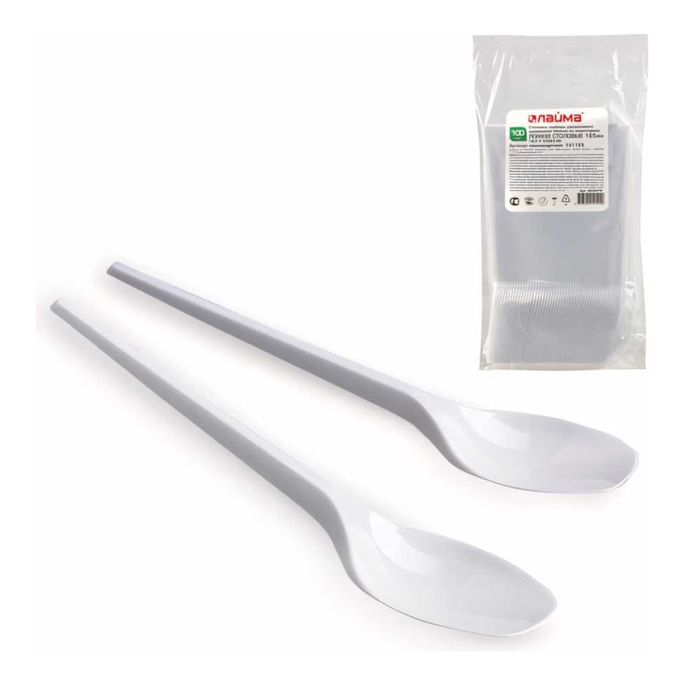 Одноразовые столовые ложки LAIMA используются в офисе, на предприятиях общественного питания, в дороге и быту. Изготовлены из высококачественного пищевого полистирола белого цвета, поэтому приборы легкие и безопасные в использовании. Подойдут как для холодных, так и для горячих (до +70°) блюд. Длина - 165 мм. В комплекте 100 штук. Не выделяют вредных компонентов при контакте с едой.