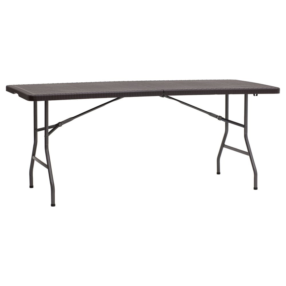 В числе преимуществ, которыми обладает этот складной пластиковый стол-книжка, можно назвать выверенные параметры, легкость, прочность и эргономичность конструкции. При длине стола 182 сантиметра, ширине в 74 см и такой же высоте за ним могут разместиться до 15 человек. Благодаря этому стол можно использовать как для выездных деловых и праздничных мероприятий, так и в личных целях на собственной даче или в загородном доме. При этом вес модели – всего 13 кг, что позволяет без проблем загрузить его в автомобиль или перевезти в одиночку. Чтобы обеспечить мебели стойкость к нагрузкам любого характера, производитель предусмотрел надежный стальной каркас и столешницу темной расцветки из полиэтилена высокой плотности (HDPE). Материал отличается достаточной упругостью, стойкостью к механическим и физическим воздействиям и простотой в уходе. В производстве столов и стульев данной серии применяется только 100%, не переработанный полиэтилен высокой плотности (HDPE). Более дешевые аналоги из переработанного пластика подвержены образованию трещин в пластике и разрушению при интенсивном использовании. Стол складной можно использовать как обеденный для дачи и дома. Удобный вариант для пикника.