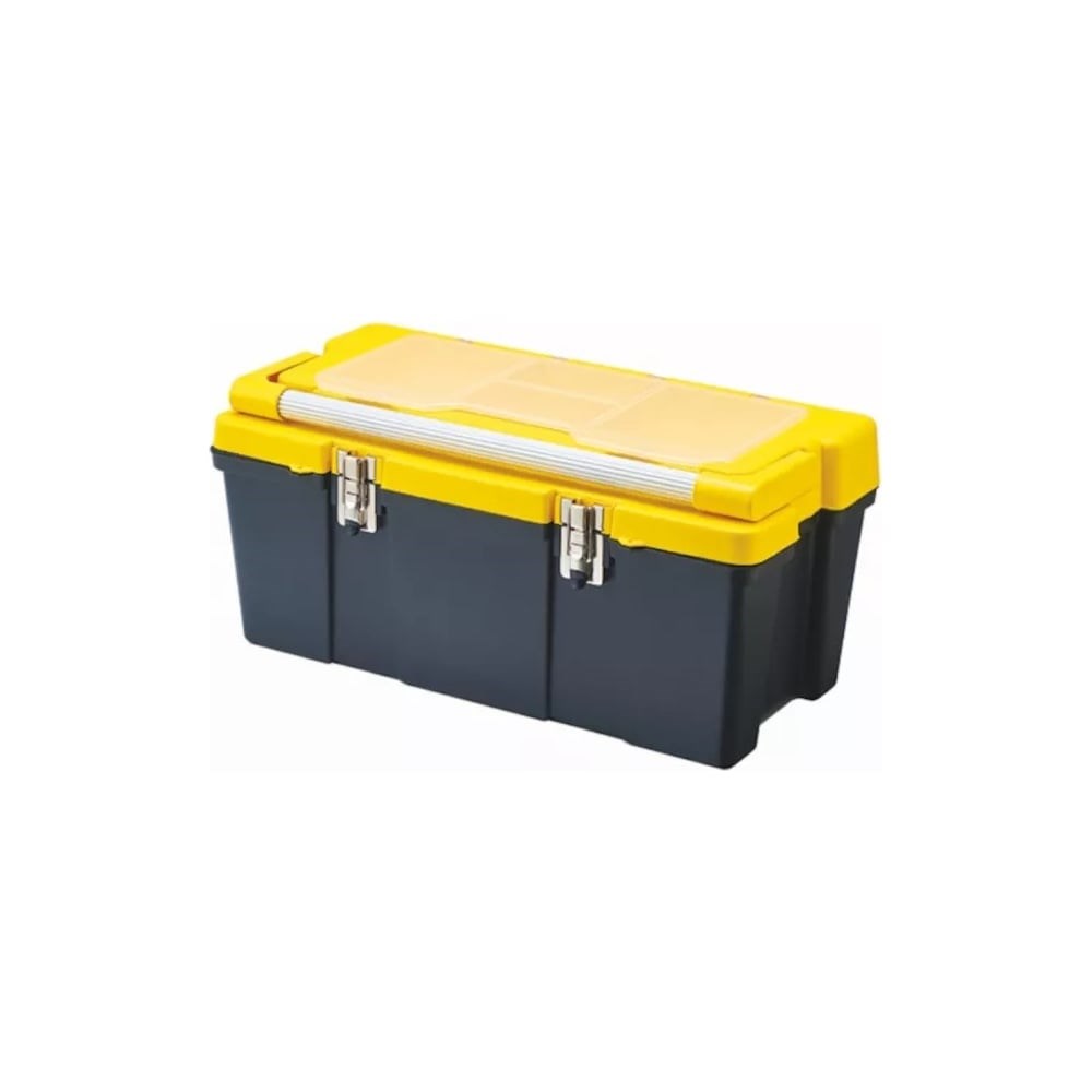 Пластиковый ящик для инструментов предназначен для удобного хранения и транспортировки инструмента. Ящик выполнен из качественного и прочного пластика. Металлическая защёлка надежно закрывает крышку ящика и препятствует утере инструмента. Удобная ручка во всю длину из алюминия. Внутренний кейс с крышкой на защелках для мелочей, что позволяет удобно распределить содержимое по усмотрению пользователя.