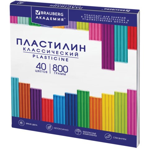 Пластилин классический BRAUBERG "АКАДЕМИЯ КЛАССИЧЕСКАЯ", 40 цветов, 800 г, СТЕК, ВЫСШЕЕ КАЧЕСТВО, 106512