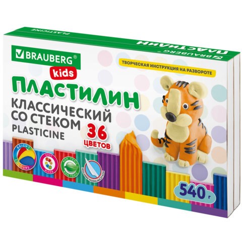 Пластилин классический BRAUBERG KIDS, 36 цветов, 540 грамм, стек, ВЫСШЕЕ КАЧЕСТВО, 106678
