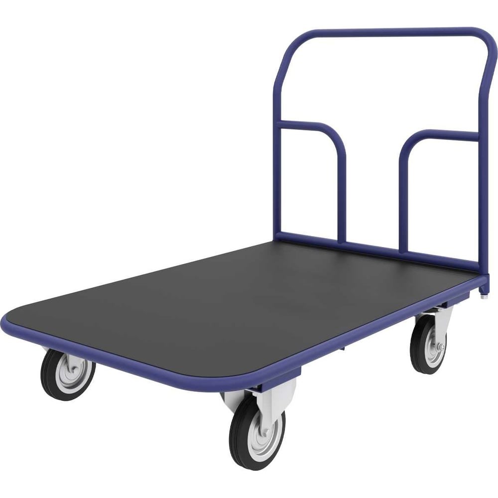 Платформенная тележка с резиновым покрытием RUSKLAD ТПР 3, 600x1000 мм, d160 мм ТПР 3 160 является прочным и простым в использовании приспособлением, которое служит для перевозки различных товаров. На платформе предусмотрено резиновое противоскользящее покрытие, которое исключает скатывание груза с тележки, а специальные резиновые накладки на рукоятке обеспечат надежный захват без эффекта проскальзывания рук. Полимерное порошковое покрытие устойчиво к влиянию коррозии, что дает возможность использовать тележку на открытом воздухе даже при неблагоприятных погодных условиях. Изделие способно выдерживать нагрузку до 450 кг. Прочная конструкция обладает четырьмя литыми колесами диаметром 160 мм.