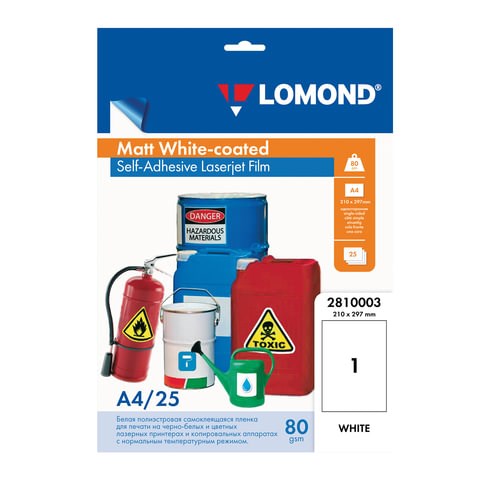 Пленка LOMOND для черно-белых и цветных лазерных принтеров, самоклеящаяся, белая, 80 мкм, А4, 25 шт., 2810003