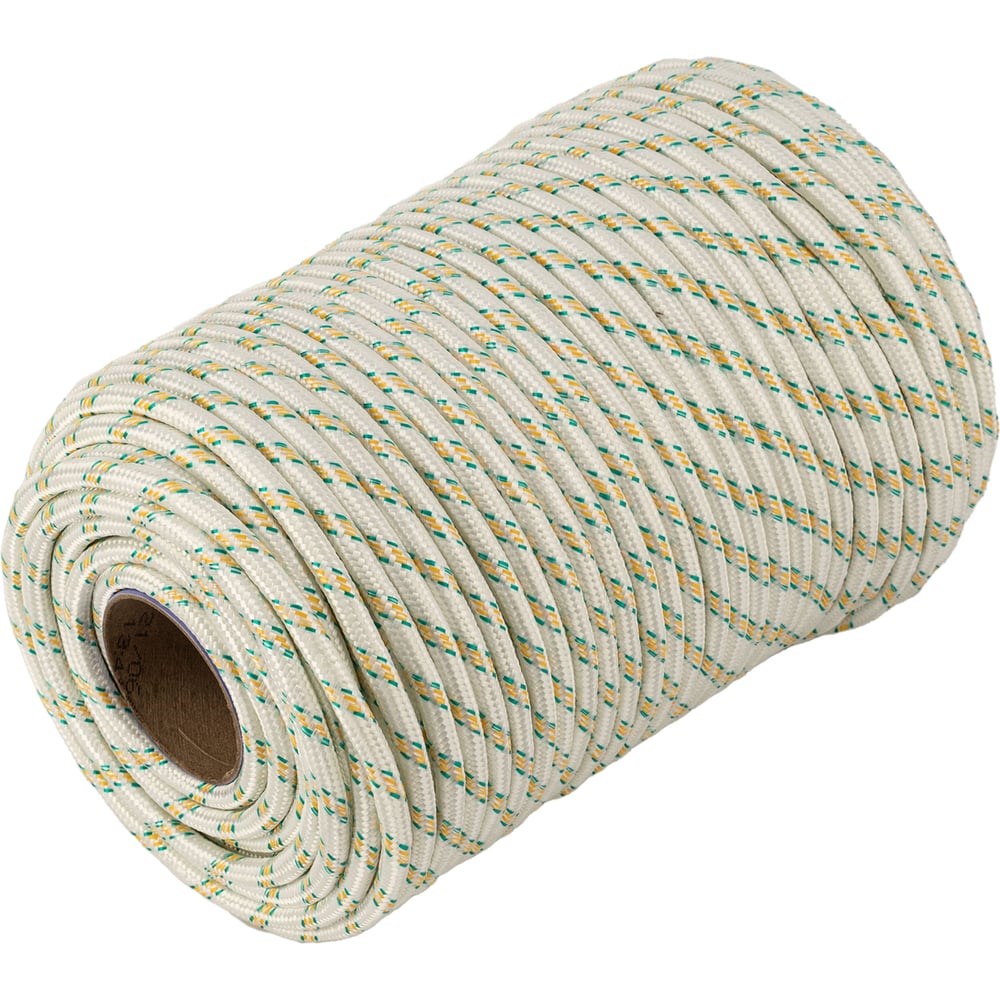 Плетеный капроновый фал Сибртех 93971, 24-прядный, с сердечником, длиной 100 м и диаметром 10 мм, используется для подъема и закрепления грузов, установки различных конструкций. Востребован в сельском хозяйстве, строительстве, нефтяной промышленности, на транспорте, в спорте, рыболовстве. Также применяется в ходе спасательных работ. Шнур имеет полиамидный сердечник, обладает высокой упругостью и выдерживает разрывную нагрузку 1300 кгс.