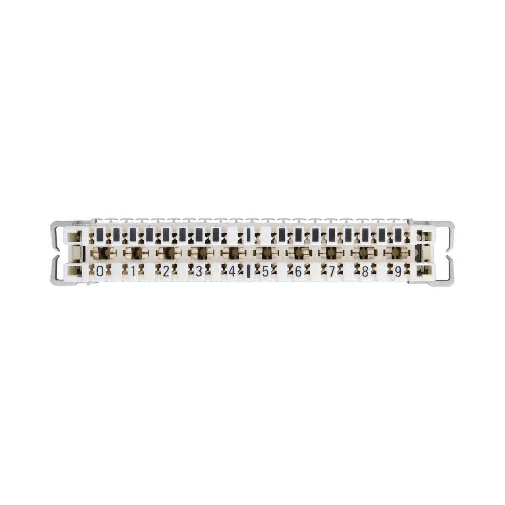Плинт 10 пар NIKOMAX крепление под кронштейн, белый, 10шт NMC-PL10-DC-10 - телефонный кросс типа KRONE на основе плинтов. Подходит для установки на простые настенные кронштейны и дальнейшего монтажа на стену или в шкафы и стойки 19”. Есть возможность установки и в закрытые настенные боксы, которые полностью готовы для монтажа плинтов. Изделие выполнено из качественного негорючего пластика. Предназначено для соединения между собой кабельных сегментов телефонной линии. Представленный плинт относится к размыкаемым и обеспечивает возможность временного разрыва линии при помощи специального размыкающего штекера, а также тестирования линии при помощи специальных щупов. Такой вид плинта поддерживает большой спектр аксессуаров защиты от перенапряжений. Маркировка кроссировочной стороны от 0 до 9.