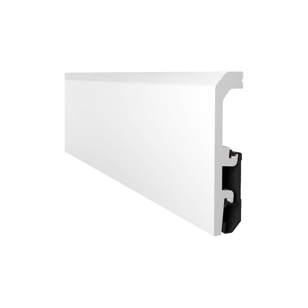 Белый напольный плинтус Arbiton Vega под покраску изготовлен из качественного материала - дюрополимера. Плинтус подойдет под любое напольное покрытие ламинат или ПВХ плитку. Покрасить плинтус можно в любой цвет любой краской не содержащей ацетон. Является идеальным решением для использования в случаях, когда необходимо замаскировать электрические или телевизионные кабели. Перекрывает деформационный зазор до 20 мм. Неоспоримым преимуществом является водонепроницаемость и твердость поверхности, защищающая от ударов и повреждений, нанесенных стене (т.е. при мытье шваброй). Устанавливается на предварительно прикрепленное к стене основание, основу можно прикрепить к стене четырьмя способами: клеем, двухсторонним скотчем, степлером и дюбелями.