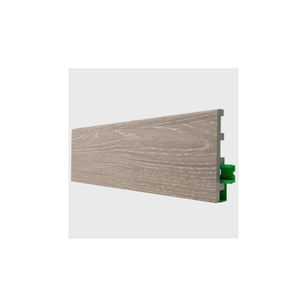 Плинтус Hannahholz 16x81x2000 мм, Дуб серый светлый, 404 Polynix 31.03.81404.325 имеет декоративное покрытие TOPLINE, тактильные ощущения, печать высокого разрешения позволяет добиваться натуральности. Изделие отлично сочетается с современными напольными покрытиями: виниловая плитка LVT, каменно-полимерная плитка SPC, традиционный ламинат или инженерная доска. Защита лаком по технологии электронно-лучевого отверждения создает хорошую эксплуатационную устойчивость декоративного элемента. В составе покрытия многослойная, высококачественная, термопластичная пленка на основе поливинила. Плинтус производится из поливиниловых гранул с добавлением воздуха и микрокальцита, что делает материал легким, но прочным, в отличии от традиционных полимеров. Новая технология имеет свойства улучшенного полимера, такие как влагостойкость, пористая структура (позволяет материалу быть более гибким).
