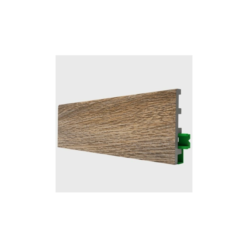 Плинтус Hannahholz SCANDIC 16x81x2000 мм, Дуб градиент, 404 Polynix 31.03.81404.371 имеет декоративное покрытие TOPLINE, тактильные ощущения, печать высокого разрешения позволяет добиваться натуральности. Изделие отлично сочетается с современными напольными покрытиями: виниловая плитка LVT, каменно-полимерная плитка SPC, традиционный ламинат или инженерная доска. Защита лаком по технологии электронно-лучевого отверждения создает хорошую эксплуатационную устойчивость декоративного элемента. В составе покрытия многослойная, высококачественная, термопластичная пленка на основе поливинила. Плинтус производится из поливиниловых гранул с добавлением воздуха и микрокальцита, что делает материал легким, но прочным, в отличии от традиционных полимеров. Новая технология имеет свойства улучшенного полимера, такие как влагостойкость, пористая структура (позволяет материалу быть более гибким).