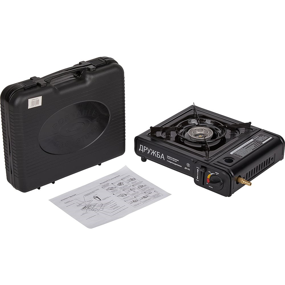 Плита с переходником TOURIST ДРУЖБА ДП-02 станет незаменимым помощником в туристическом походе или на загородном участке. Она работает от портативного газового баллона, который помещается в специальный отсек. Поджиг производится автоматически при повороте переключателя. Особая конструкция варочной поверхности позволяет защитить пламя от ветра, что обеспечивает максимально комфортное использование прибора вне помещений.