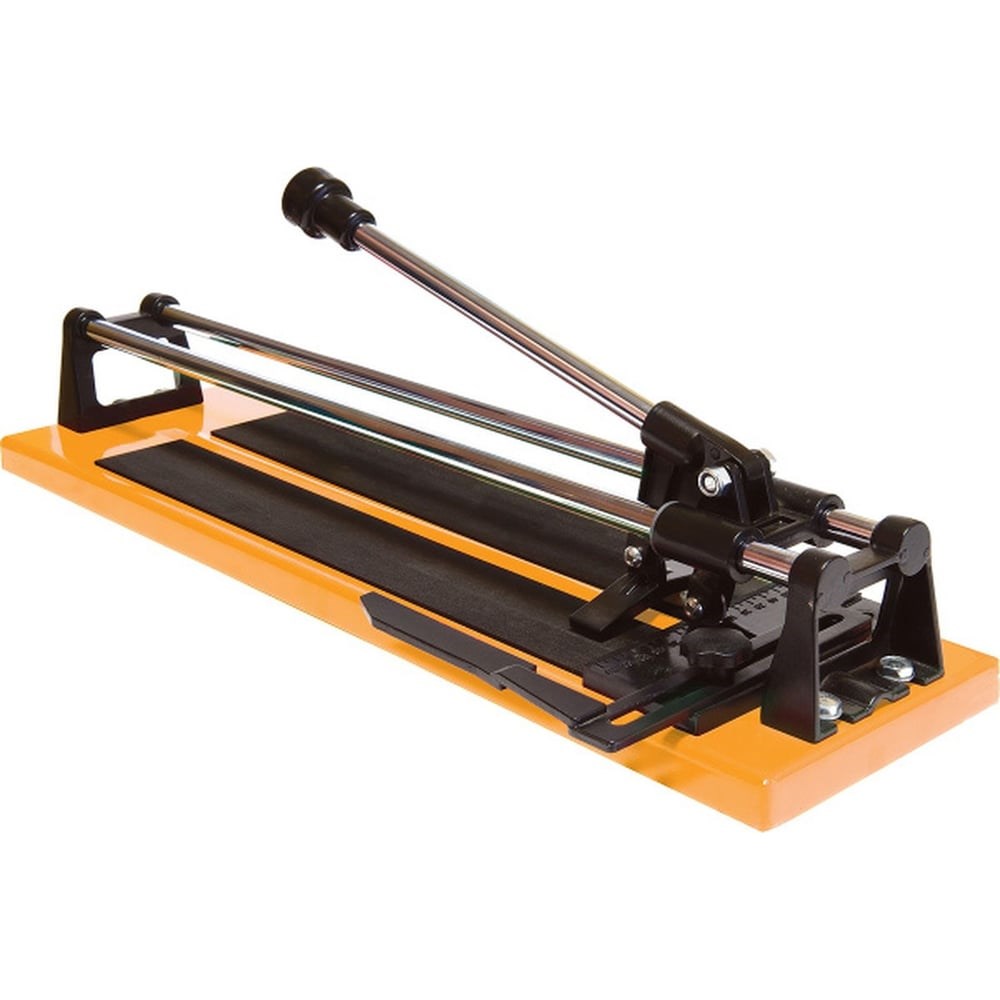 Плиткорез — инструмент для работы с керамической плиткой. Упрощает и ускоряет резку, позволяет получать ровный и аккуратный срез. Высокий ресурс — режущий ролик изготовлен из твердосплавного материала. Возможность фиксации на поверхности рабочего стола — в основании плиткореза имеются специальные отверстия. Плиткорез усиленный имеет плавный ход — каретка свободно передвигается благодаря двум направляющим из высококачественной инструментальной стали с антикоррозийным покрытием. Высокое качество работы — стальное основание обеспечивает устойчивость плиткореза, мягкие амортизирующие накладки предотвращают сдвиг плитки. Комфортная работа — на рукоятке имеется специальный захват.
