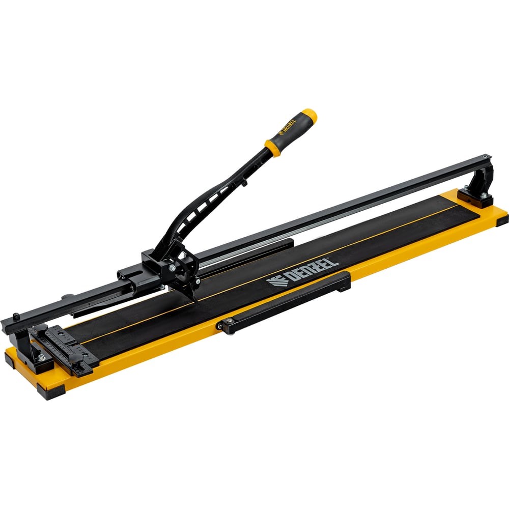 Ручной плиткорез с рельсовой направляющей и стальной станиной, с кареткой на подшипниках и усиленной рукояткой-пеналом, предназначен для прямой и диагональной резки керамической плитки и керамогранита длиной до 1000 мм и толщиной до 16 мм. Раздвижные упоры упрощают работу с плиткой большого размера. Инструмент используется для проведения отделочных работ.Надежность — цельнометаллическая направляющая отличается высокой прочностьюУдобная работа — благодаря противоскользящим накладкам плиткорез не смещается даже на гладких поверхностяхРезка плитки под заданным углом — производитель предусмотрел линейку-угольникАккуратный рез — ролик и каретка снабжены подшипниками, двигаются плавно и без рывков. Высокий ресурс — ролик из твердого сплава ВК8 с покрытием из нитрида титана долго сохраняет рабочие свойства и обеспечивает максимальное качество резаЭргономичность — плитколом с магнитным держателем не создает помех во время резки. Удобная комплектация — плиткорез поставляется с запасным роликом, приобретать его отдельно не нужноПродуманная конструкция — запасной ролик хранится в рукоятке-пенале и не потеряется