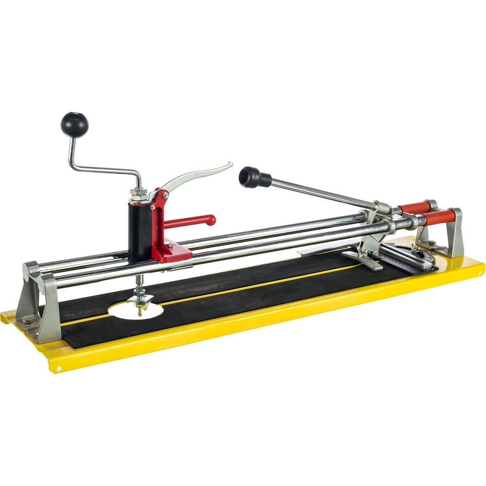 Плиткорез с циркулем Энкор 600мм 1/3 3664 применяется для разрезания облицовочной керамической плитки с помощью роликового резца. Он закреплен на подвижном кронштейне, как и упорная вилка, предназначенная для надлома плитки. Пористая резиновая накладка не дает плитке проскальзывать во время работы. Циркуль, которым оснащен инструмент, позволяет не только производить прямой рез, но и вырезать отверстия.