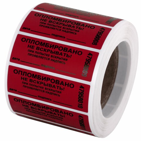 Пломбы самоклеящиеся номерные, КОМПЛЕКТ 1000 шт. (рулон), длина 66 мм, ширина 22 мм, КРАСНЫЕ, 609667