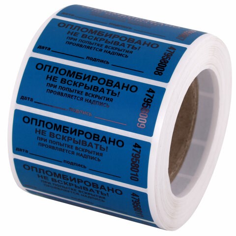 Предназначены для опломбирования объектов, на которых нет проушин или иных отверстий. При несанкционированном вскрытии на поверхности наклейки проявляется скрытый текст. После отклеивания невозможно приклеить обратно к поверхности опломбирования, скрыв индикацию срабатывания. Применяется для опломбирования почтовых и курьерских посылок, писем, архивов, контейнеров, сейфов, шкафов, дверей, монетоприемников, офисной техники, инкассаторских сумок, банкоматов, окон, медицинских контейнеров. При отклеивании не оставляют следа на опломбируемой поверхности.