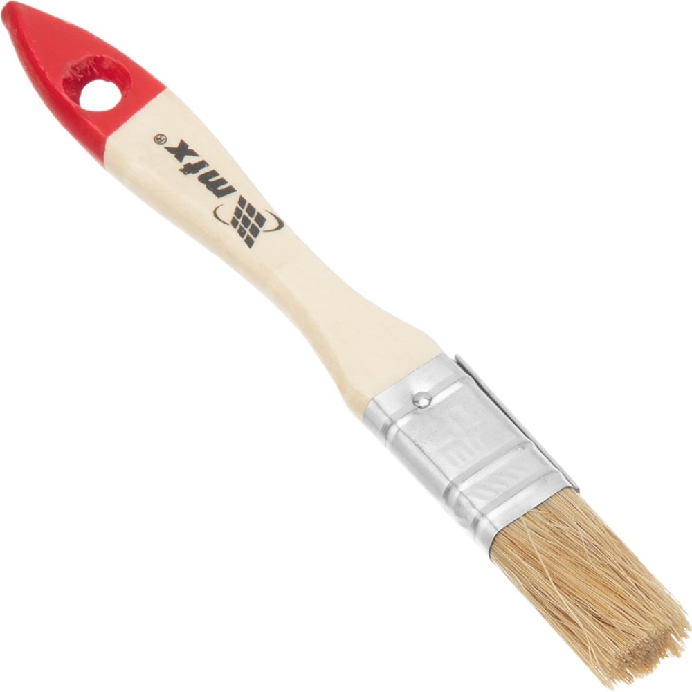 Плоская кисть MTX «Стандарт» 82515 шириной 3/4 дюйма (20 мм), с натуральной щетиной и деревянной ручкой, — инструмент для проведения бытовых малярных работ. Натуральная светлая щетина обладает высокой износоустойчивостью и подходит для нанесения красок на основе растворителей. За счет ширины 20 мм кисть подходит для окрашивания узких поверхностей, например, плинтусов и рам.