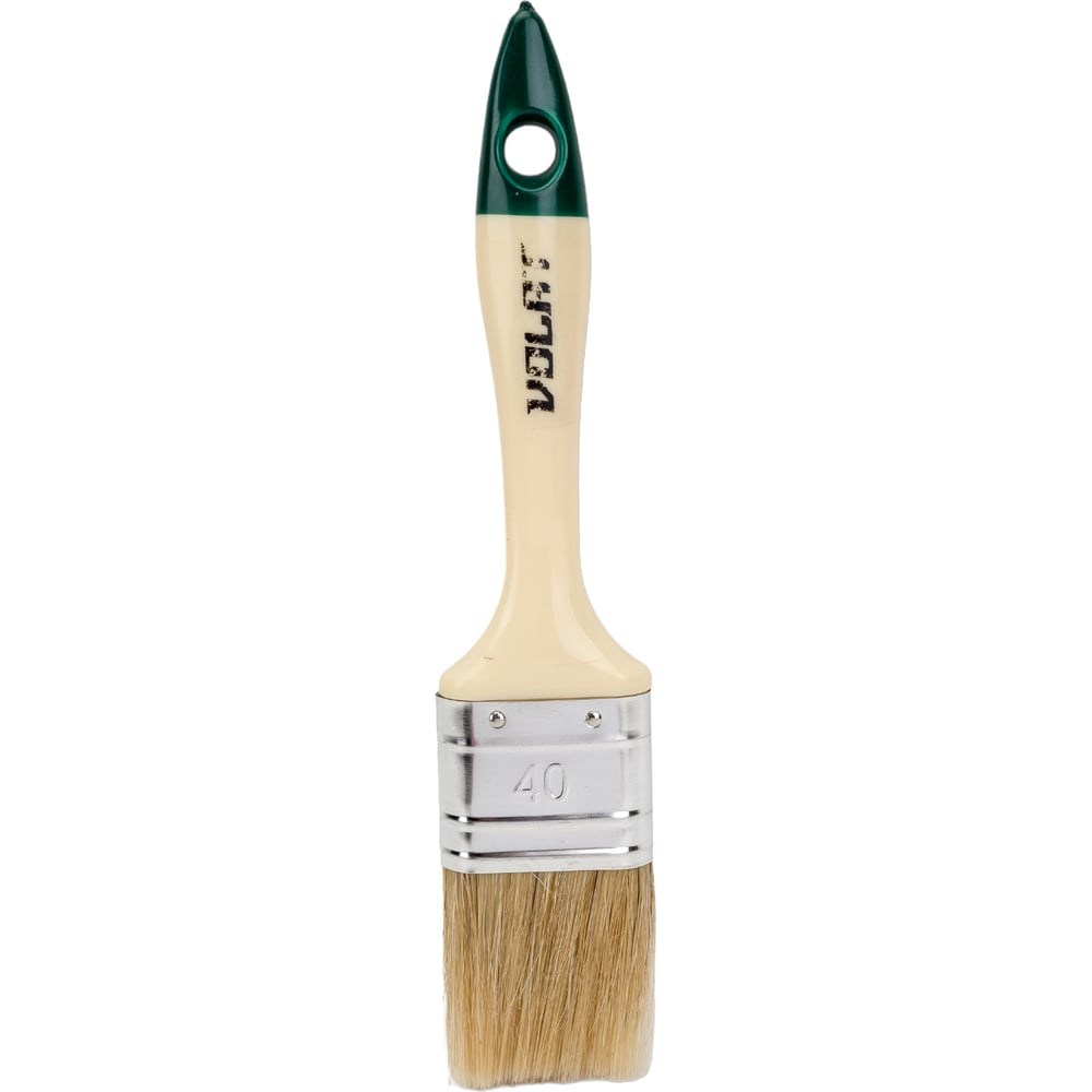 Плоская кисть предназначена для выполнения различных внутренних и наружных малярных работ на плоских поверхностях. Используется со всеми типами лакокрасочных материалов (ЛКМ), применяется преимущественно при окрашивании лакокрасочными материалами на масляной основе, густыми лаками, олифой и эмалями. Натуральная светлая щетина устойчива к сильным растворителям, обладает хорошей краскоотдачей и обеспечивает равномерное распределение краски по окрашиваемой поверхности. Имеет определенные ограничения при применении ЛКМ на водной основе, так как натуральная щетина впитывает в себя воду. Металлический бандаж оснащен антикоррозийной обработкой. Пластмассовая рукоять с отверстием для подвеса обеспечивает комфортное использование.