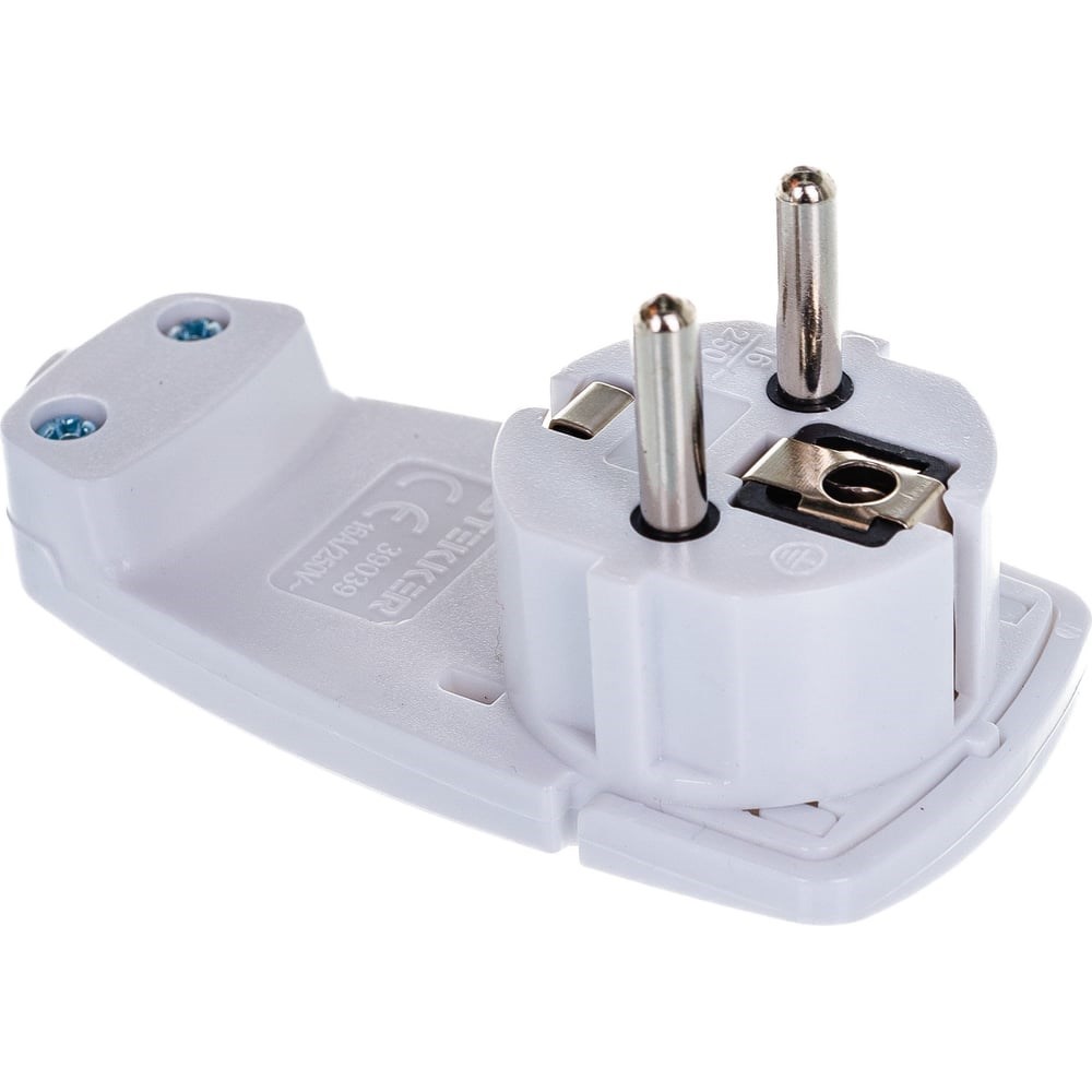 Штепсельная вилка угловая плоская с кольцом с заземлением в разборном корпусе, чаще всего используется для комплектации приборов не бытового назначения или для замены неразъемных вилок, вышедших из строя. Штепсельные вилки угловые с заземлением это двухполюсные вилки с боковыми заземляющими контактами, снабжены металлической скобой, изолирующей прокладкой.
