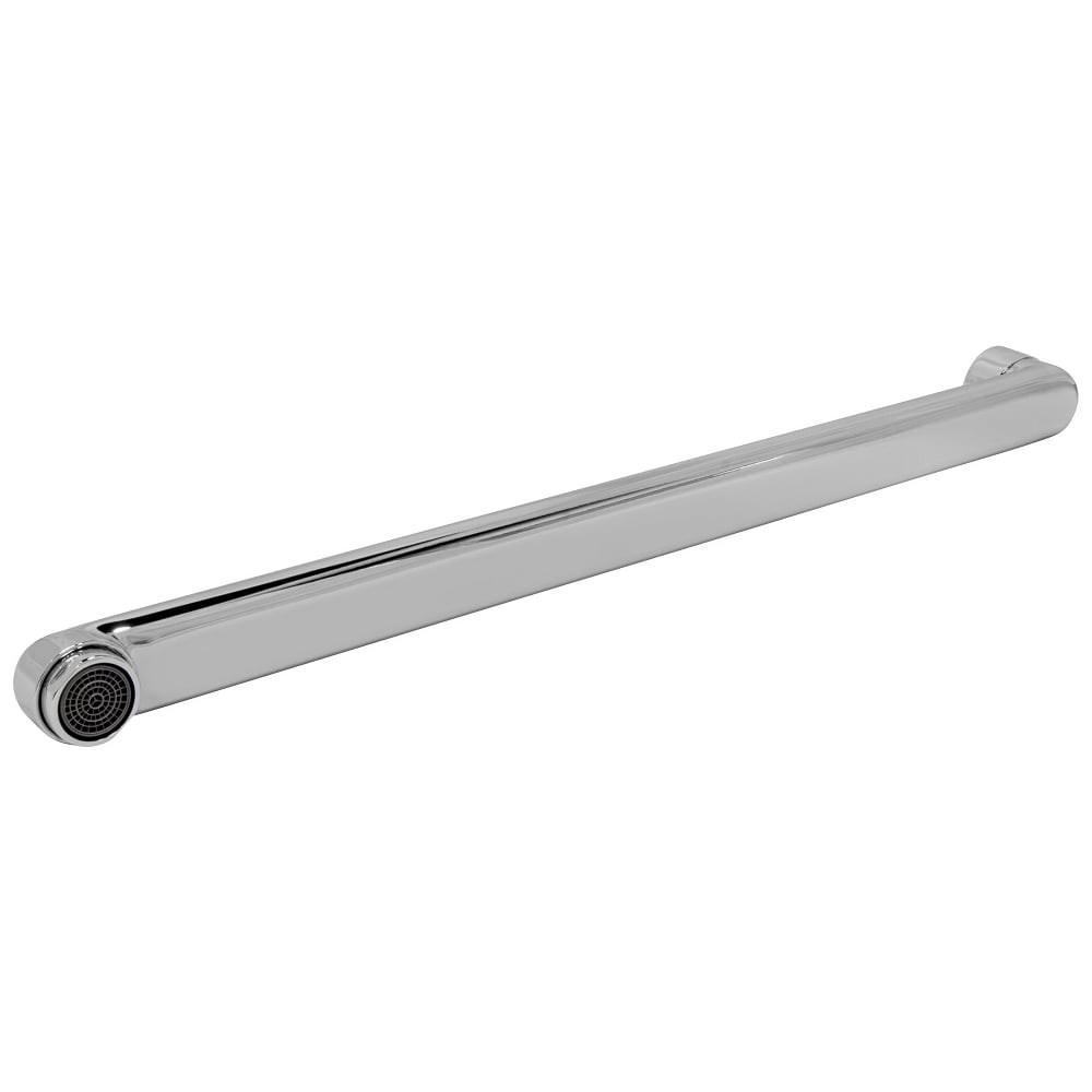 Основным предназначением излива является подача воды, поступающей из смесителя. Представляет собой L-образную хромированную деталь длиной 30 см. Универсальный излив для смесителя изготовлен из стали и имеет хромированное покрытие. Устройство оснащено аэратором, проходя через который, вода насыщается множеством пузырьков воздуха, позволяя формировать струю в мягкий и ровный поток, а также экономить расход воды. Данный излив отлично подойдет для почти любой ванной комнаты за счет своего лаконичного и минималистичного дизайна.