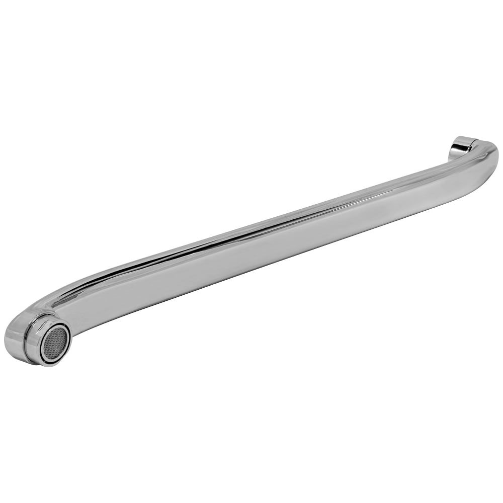 Основным предназначением излива является подача воды, поступающей из смесителя. Представляет собой S-образную хромированную деталь длиной 40 см. Универсальный излив для смесителя изготовлен из стали и имеет хромированное покрытие. Устройство оснащено аэратором, проходя через который, вода насыщается множеством пузырьков воздуха, позволяя формировать струю в мягкий и ровный поток, а также экономить расход воды. Данный излив отлично подойдет для почти любой ванной комнаты за счет своего лаконичного и минималистичного дизайна.