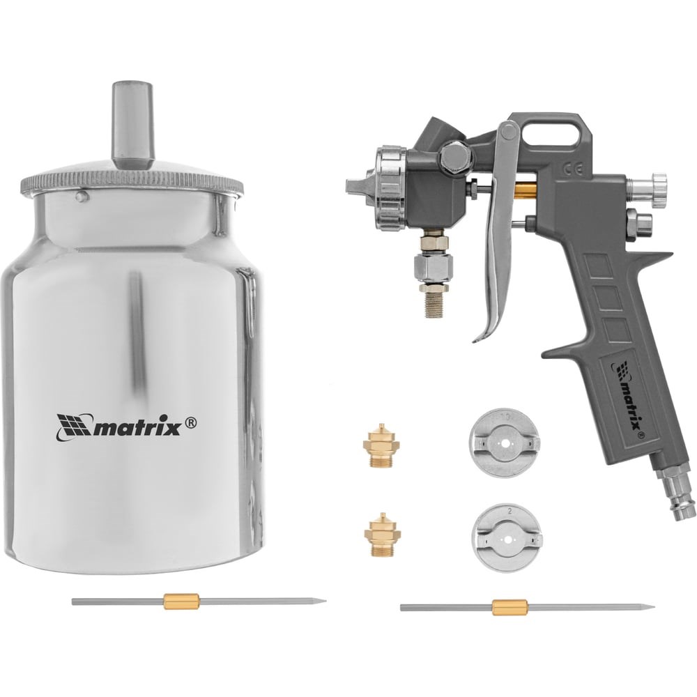 Пневматический краскораспылитель MATRIX 57316 используется при наружных и внутренних отделочных работах. С его помощью производится нанесение защитных, декоративных и изоляционных покрытий на различные поверхности. Пистолет имеет металлическую конструкцию, что обеспечивает надежность и устойчивость к механическим повреждениям. В комплект входят сопла диаметром 1.2, 1.5 и 1.8 мм.