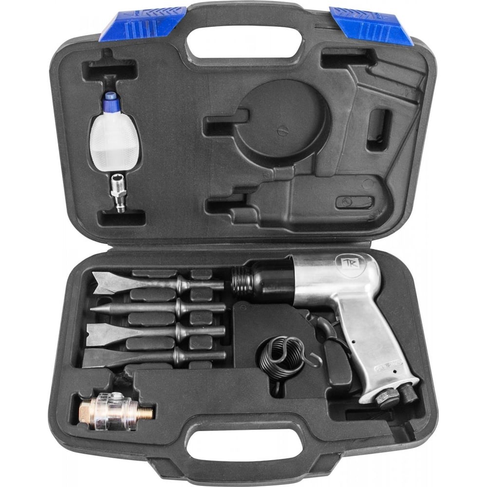 Пневматический молоток Thorvik AHK9150 9 предметов 52647 - легкий и удобный инструмент для несложных долбежных работ. Быстросменный патрон обеспечивает быструю и безынструментальную замену зубил. Металлический корпус защищает внутренние узлы от повреждений и более надежен в тяжелых условиях производства. Данная модель поставляется в кейсе, что решает вопрос хранения и транспортировки.
