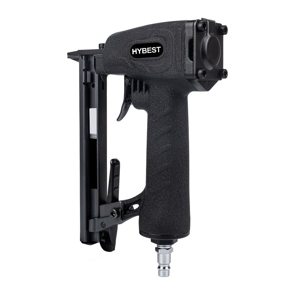 Скобозабивной мебельный пистолет Hybest 1013J — пневматический степлер отличается простотой эксплуатации и высокой надежностью. Он идеально подходит для профессиональной обивки мебели, а также для других отделочных и интерьерных задач, где требуется долгая эксплуатация без больших перерывов.Основные области применения:Столярные и плотницкие работы: крепление пленок, мембран и других материалов.Обивка мебели и других конструкций.Работы с деревом, фанерой и ДСП.Подходящие расходные материалы:Скоба обивочная тип 53F длиной до 13 мм.
