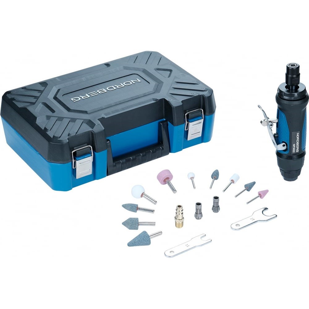 Пневмобормашинка NORDBERG NP3022K предназначена для шлифовки и зачистки различных поверхностей и краев в различных деталях. Оснащена предохранителем от случайного включения на курке и двумя цангами для зажима насадок с хвостовиком 3 и 6 мм.