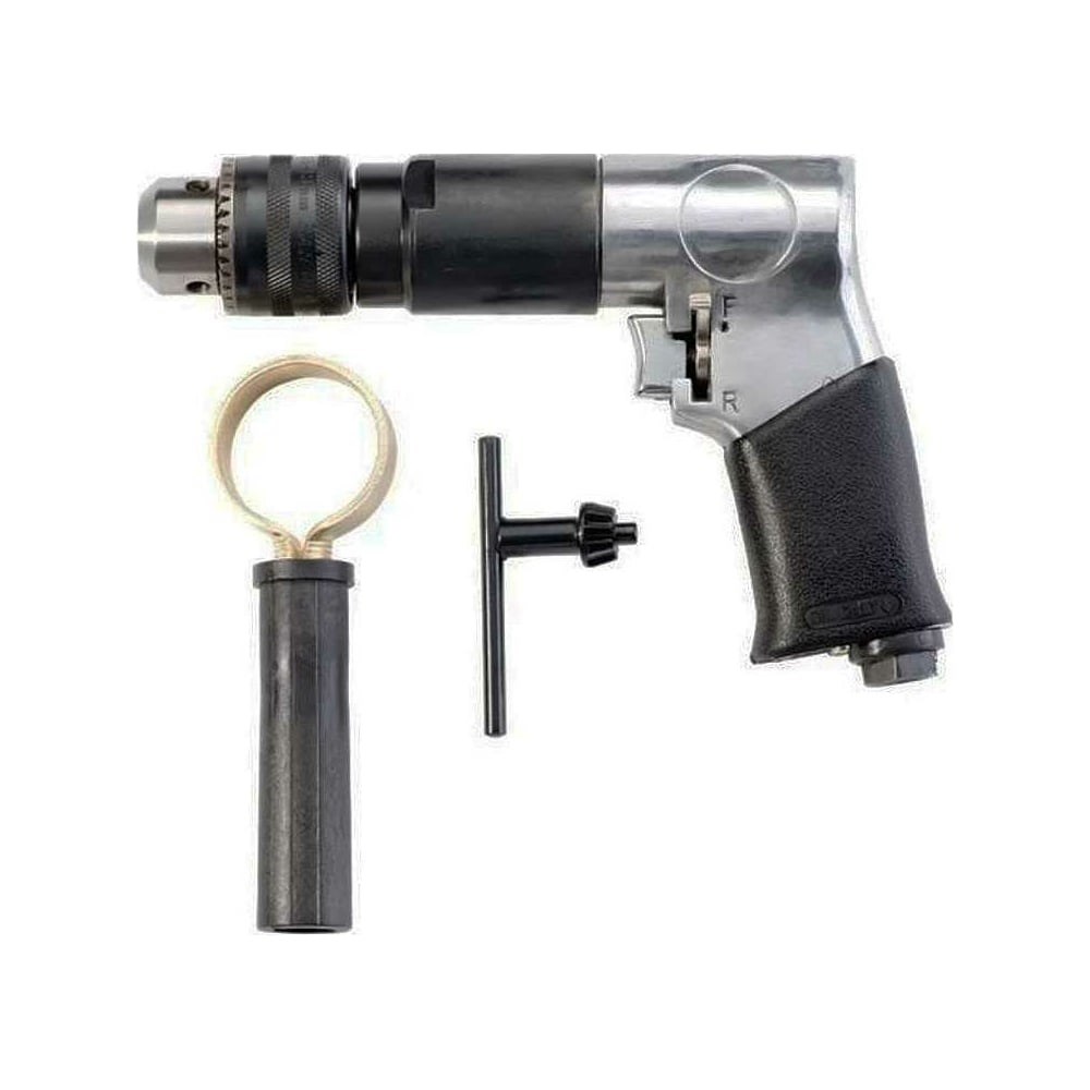 Пневмодрель с реверсом ТЕМП RT-3805-P применяется для сверления и развертывания отверстий в различных материалах с применением сверл с цилиндрическим хвостовиком. Оснащена ключевым кулачковым патроном. Как опция на эту дрель может быть установлен быстрозажимной патрон. Малый вес и компактный корпус с обрезиненной рукояткой дают возможность применять эту пневматическую дрель в мастерских или на малом производстве, где не требуется высокая мощность пневмоинструмента. Рекомендованный рукав 9 мм.