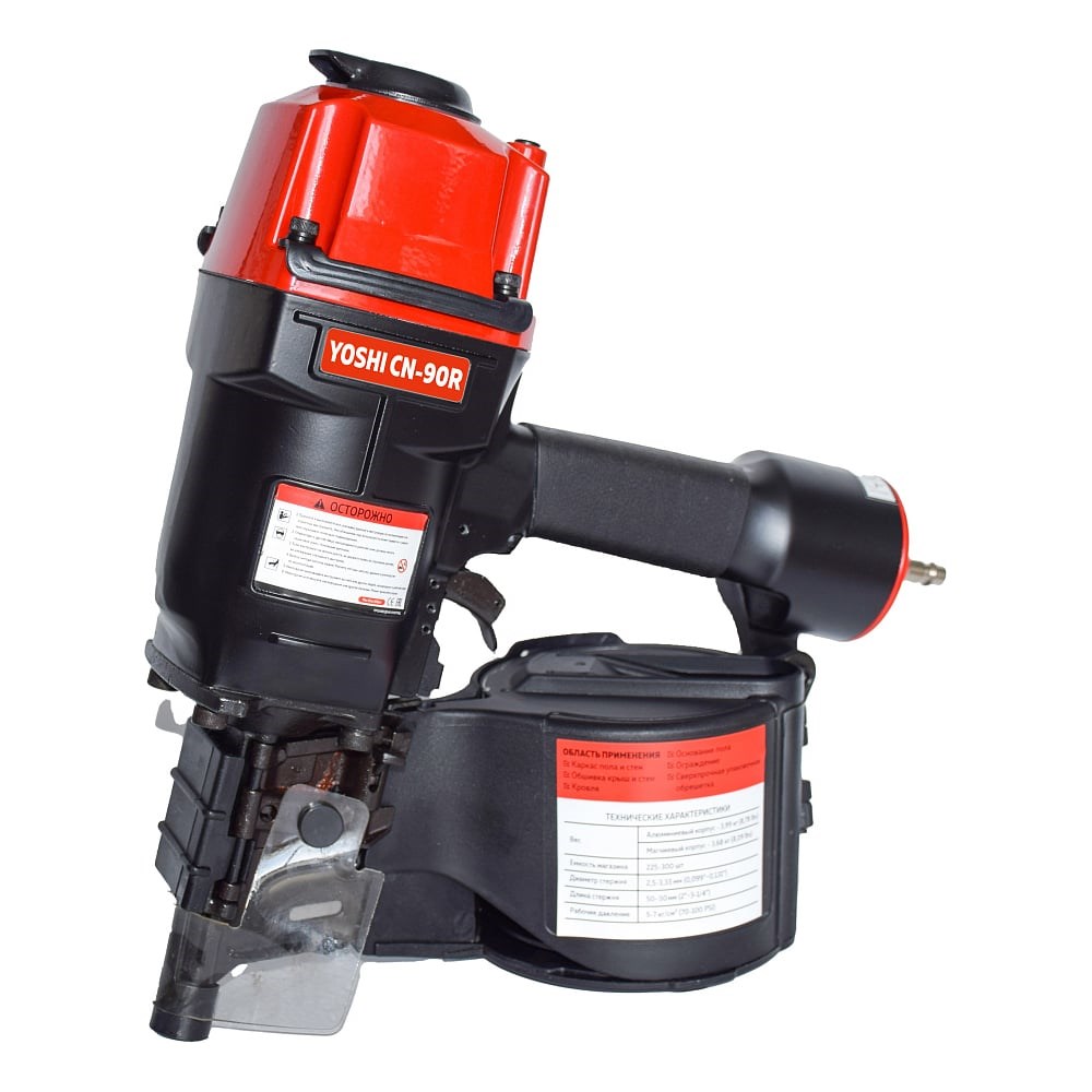 Yoshi CN-90 R - пневматический гвоздезабивной пистолет, предназначен для широкого спектра работ по дереву. Инструмент работает с барабанными гвоздями типа CNW длиной от 50 до 90 мм, с гладкой, кольцевой, винтовой накаткой, а также гвоздями со скошенным носом, что позволяет использовать его для различных производственных задач.Благодаря небольшому весу и низкому потреблению воздуха, особенно удобен для продолжительной эксплуатации. Оптимальная балансировка инструмента обеспечивает точность и контроль при интенсивных работах.Основные сферы применения:Каркасное домостроение: сборка стеновых панелей, настил кровель, монтаж обрешётки.Производство упаковки: изготовление деревянных ящиков, поддонов и тары.Фасадные работы: крепление элементов обшивки и наружных конструкций.Мастерские и ремонтные бригады: монтаж деревянных каркасов, ремонт и реконструкция объектов.Бренд "Yoshi" входит в комплекс пневматических решений компании "ForEst" и отвечает за разработку и поставку пневматических инструментов и компрессорного оборудования. Тесное сотрудничество с "ForEst" позволяет оптимизировать инструменты для работы как с отечественной, так и с импортной крепёжной продукцией, обеспечивая высокую скорость, точность и надёжность. Инструменты Yoshi отличаются продуманным дизайном, эргономичностью и долговечностью, что делает их востребованными как на крупных производствах, так и для личного использования при выполнении бытовых задач и позволяет создавать комплексные пневматические решения.