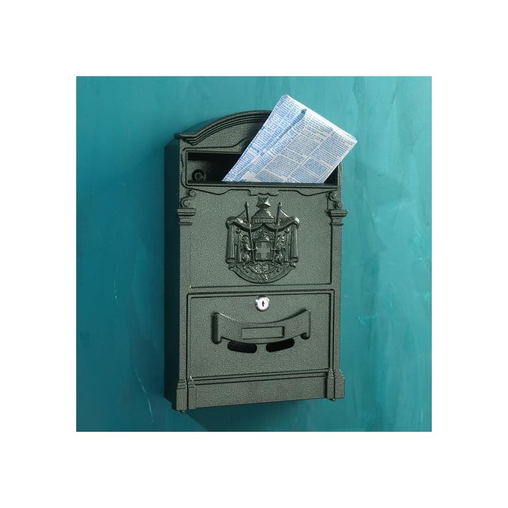 Почтовый ящик Аллюр №4010 тёмно-зелёный 7679 подходит для хранения корреспонденции, которое крепится на внешнюю часть забора, двери или квартиры. Ящик изготовлен из прочного материала, благодаря чему не подвержен механическим повреждениям. Задняя стенка корпуса оснащена замком для монтажа. Качественное окрашивание увеличивает срок службы ящика, а прочная сталь обеспечивает сохранность содержимого.
