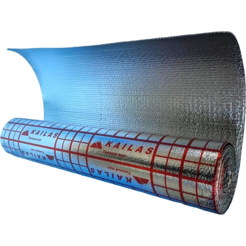 KAILAS BUBBLE - современный высокотехнологичный многослойный теплоизоляционный материал, состоящий из трехслойной воздушно пузырчатой пленки, ламинированной с верхней стороны металлизированным покрытием с разлиновкой (шаг разметки 5 х 5см), защищающим ее от воздействия агрессивных сред (щелочь). С нижней стороны нанесен отражающий слой из алюминиевой фольги, который защищает от повреждения пузырьковую пленку и дополнительно отражает потоки холода от межэтажного перекрытия.Главное отличие KAILAS BUBBLE заключается в обеспечении воздушного зазора между нагревательными элементами в стяжке пола и отражающим слоем. В результате этого обеспечивается более высокий КПД по отражению тепла обратно в сторону помещения и более равномерный прогрев пола, что влечёт за собой снижение затрат на эксплуатацию.используется натуральная алюминиевая фольга толщиной 40 мкм. равномерно распределяет тепло нагревательных элементов по всей поверхности полаполимерный слой защищает фольгу от агрессивного воздействия цементной стяжки (защищающей алюминий от щелочи)разметка с шагом 5 см для удобства укладки греющих элементовснижает уровень шума до 30 дБслой воздушно-пузырчатой пленки плотностью 190 кг/м3 выдерживает до 3000 кгкаждый рулон упаковывается в защитный полиэтиленовый пакетматериал является экологически безопасным и безвредным для здоровья людей и животных.Применяется в системах теплых полов:- теплые водяные полы- теплые электрические полы- теплые инфракрасные полы