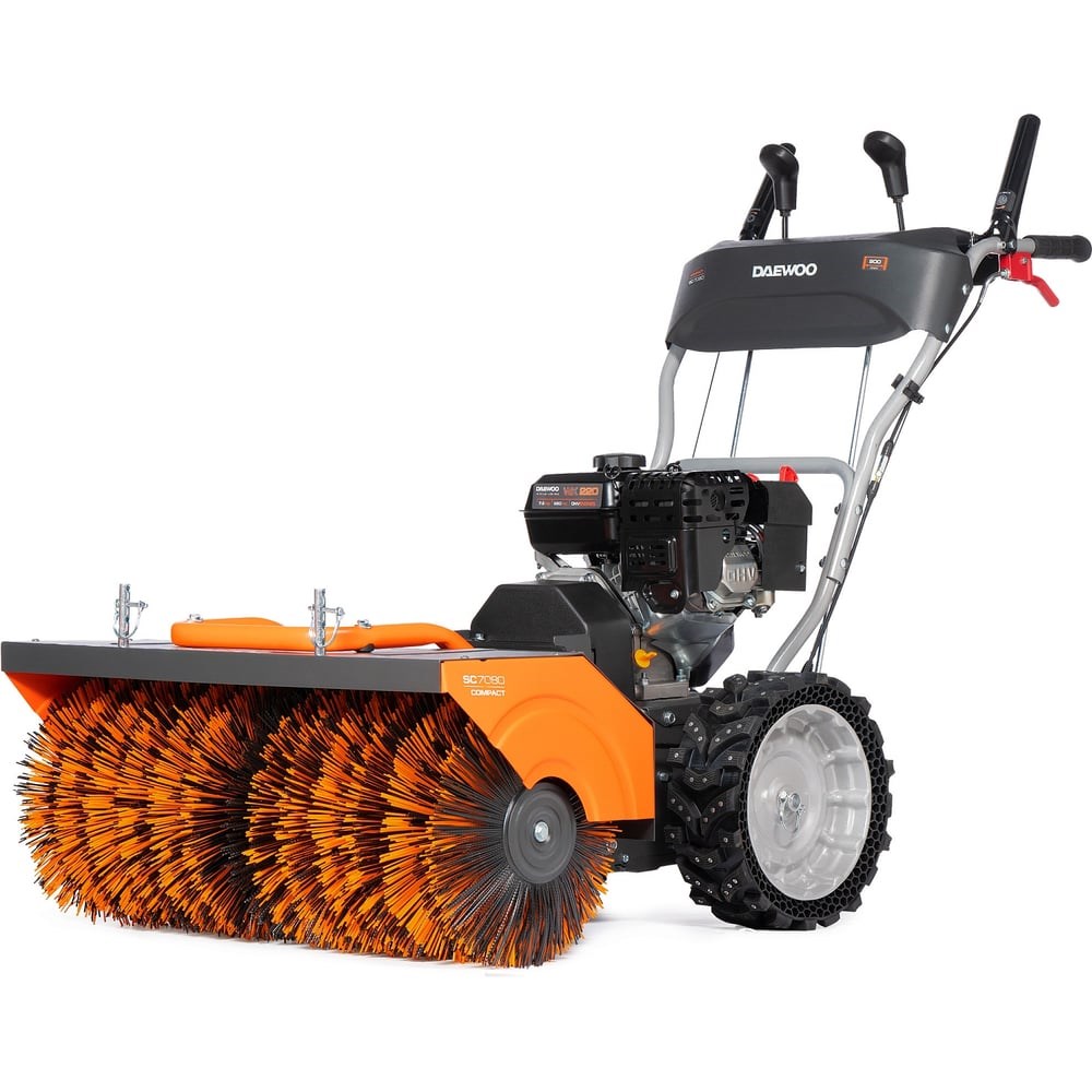 Подметальная машина DAEWOO SC 7080 применяется для уборки снега в саду, вокруг дома и других общественных пространствах. Система имеет возможность настройки скорости, 6 скоростей вперед и 2 скорости назад, что позволяет подстроится под высоту снежного покрова. Основной вес снегоуборщика приходится на ось колес, за счёт чего гарантируется лучшее сцепление с поверхностью. Щетка вращается со скоростью 288 об/мин и убирает снег до основания. Дополнительные характеристики: Взаимная блокировка ручек: есть. Емкость картера: 0.6 л. Обороты двигателя: 3600 об/мин. Тип двигателя: четырехтактный.