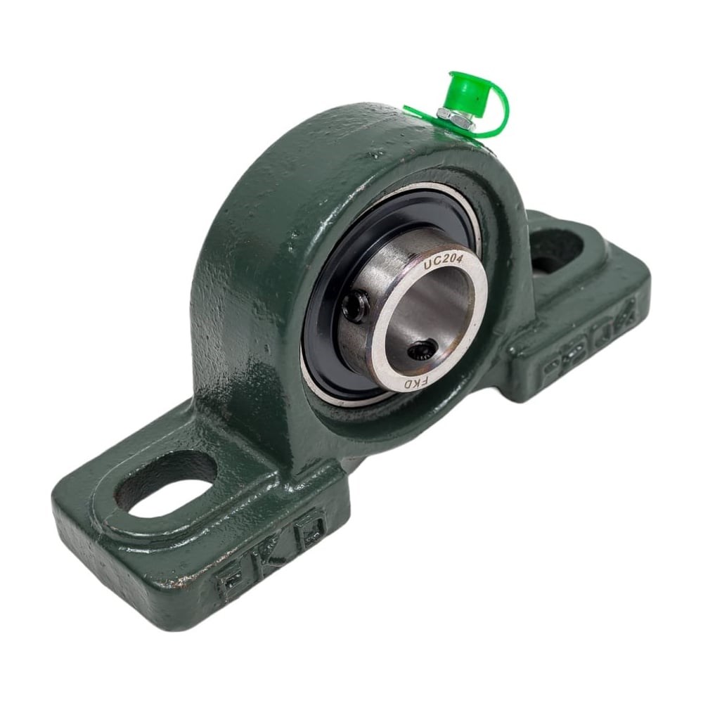 Подшипник шариковый радиальный однорядный с двумя уплотнениями, широким внутренним кольцом и установочным винтом во внутреннем кольце. Подшипник является самоцентрирующимся (самоустанавливающимся), так как корпус имеет сферическое посадочное отверстие, а сам подшипник сферическое наружное кольцо, что позволяет подшипнику слегка перемещаться в корпусе компенсируя перекос вала. Подшипник имеет отверстия и канавку для смазки, корпус комплектуется пресс-маслёнкой. Направление воспринимаемых нагрузок - радиальное и осевое в обе стороны. Монтаж на валу удобен и прост. Установлен в корпус Р стационарного типа. В зависимости от производителя подшипник UC может быть установлен в корпусе ровно либо с небольшим смещением (с преднатягом). При монтаже на вал подшипник принимает необходимое положение в посадочном отверстии.