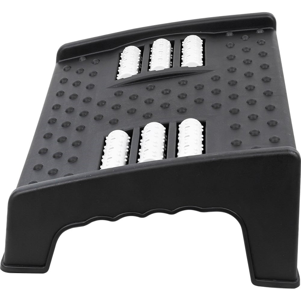 Подставка для ног с массажными роликами WMC TOOLS — это удобный аксессуар для работы за компьютером, который помогает снизить нагрузку на позвоночник, улучшить осанку и повысить комфорт в течение дня. Благодаря эргономичной форме и прочной конструкции из утолщённого пластика подставка гармонично вписывается в любой интерьер и подходит для использования дома, в офисе или салоне красоты.Массажные ролики активизируют кровообращение и лимфоток, предотвращают отёки и способствуют профилактике варикоза. Подставка станет полезным помощником для беременных женщин, пожилых людей и всех, кто проводит много времени сидя.Забота о здоровье Снижает нагрузку на позвоночник, помогает формировать правильную осанку и предотвращает застойные процессы в мышцах.Массажный эффект Ролики стимулируют кровообращение и лимфоток, уменьшают отёки и позволяют размяться, не вставая с рабочего места.Противоскользящее покрытие Рельефная поверхность обеспечивает уверенное положение стоп и предотвращает скольжение.Прочность и надёжность Конструкция выполнена из утолщённого пластика, устойчива и стабильна при использовании.Универсальность применения Подходит для работы в офисе и дома, а также для салонов красоты — делает процедуры педикюра более удобными.Комфорт для разных категорий пользователей Полезна беременным, пожилым людям и детям, формируя привычку сидеть правильно.Компактность и лёгкая сборка Размеры позволяют удобно разместить подставку под столом, а установка не требует специальных инструментов.
