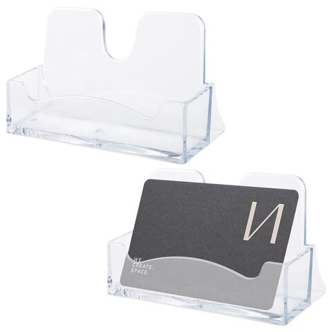 Подставка для визиток настольная BRAUBERG CLASSIC 40х100х55 мм, на 50 визиток, прозрачная, 238103