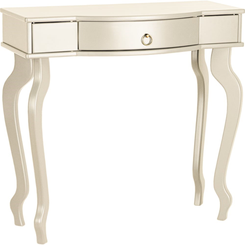 Изящная консоль Берже 11 станет украшением спальни, гостиной, прихожей, будуара в классическом стиле. Кроме выдвижного ящика, у модели есть два потайных. Благодаря этому предмету все важные предметы будут под рукой в надёжном месте. Консоль удобно использовать как туалетный столик, совмещая с банкеткой и зеркалом из серии Берже.
