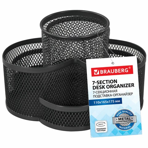 Подставка-органайзер вращающаяся BRAUBERG "Germanium", 7 секций, 110х165х175 мм, черная, металл, 237980